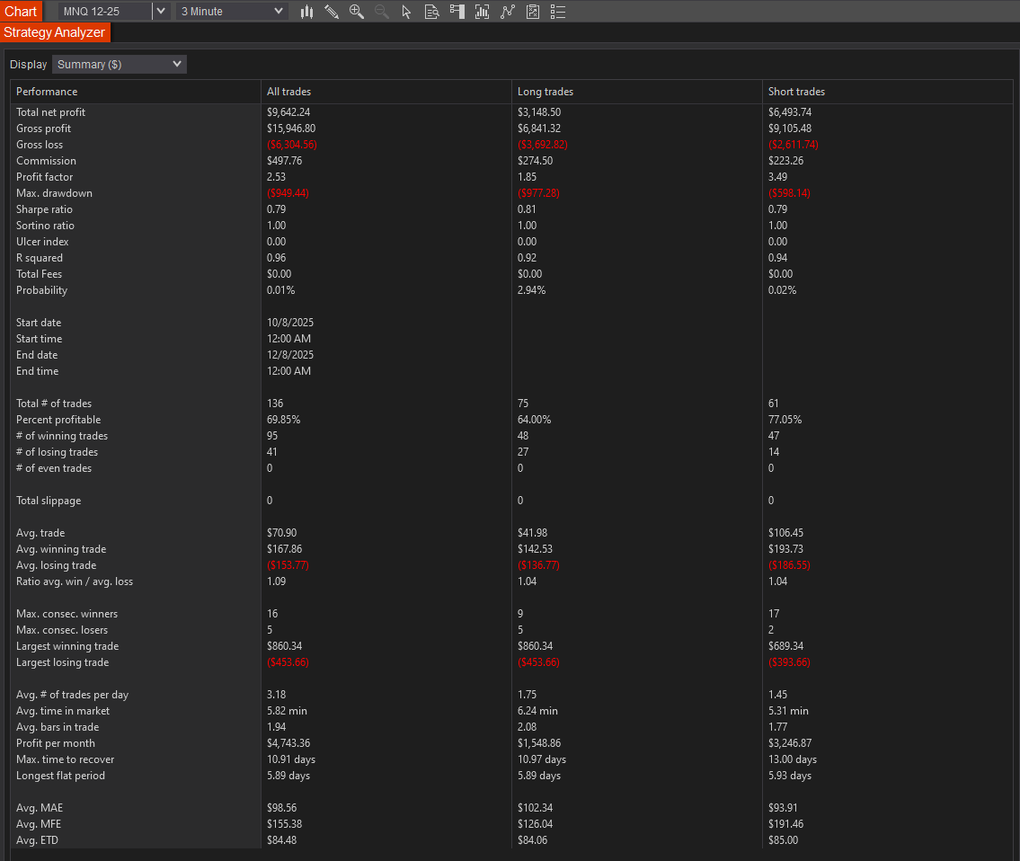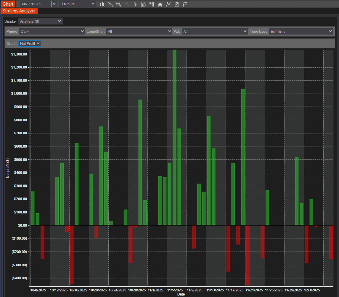 Backtest results align extremely closely with live trading due to controlled, rule-based entry logic.
